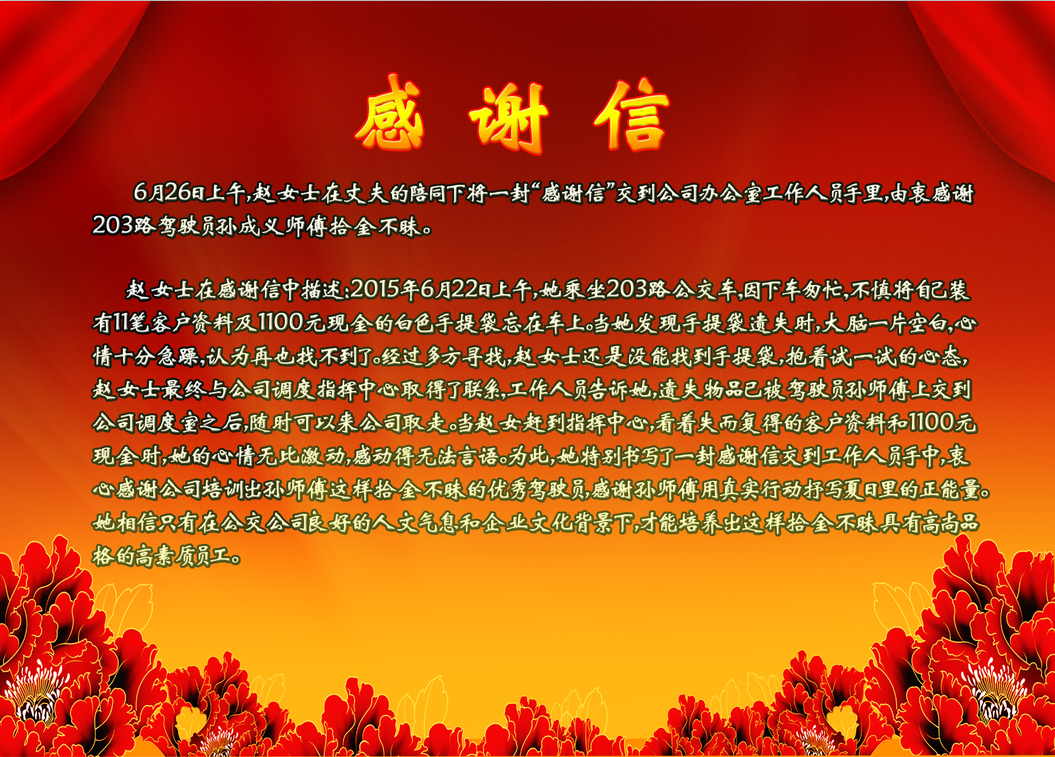 一封给203路驾驶员孙师傅的感谢信