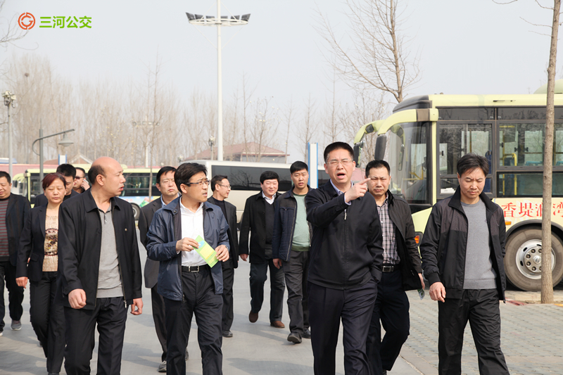 2015年3月27日下午,三河市委书记薛永纯、副市长李铁生一行莅临公司视察指导工作,交通运输局局长刘岳、副局长王广鹏、公司班子成员陪同。